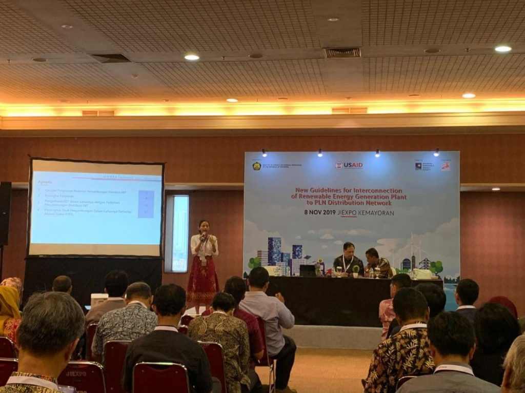 The other speakers in the workshop include representatives from the Ministry of Energy and Mineral Resources, PLN, and USAID ICED II.