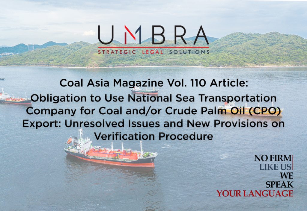 Our article on “Obligation to Use National Sea Transportation Company for Coal and/or Crude Palm Oil (CPO) Export: Unresolved Issues and New Provisions on Verification Procedure” was recently featured in Coal Asia Magazine Vol. 110.