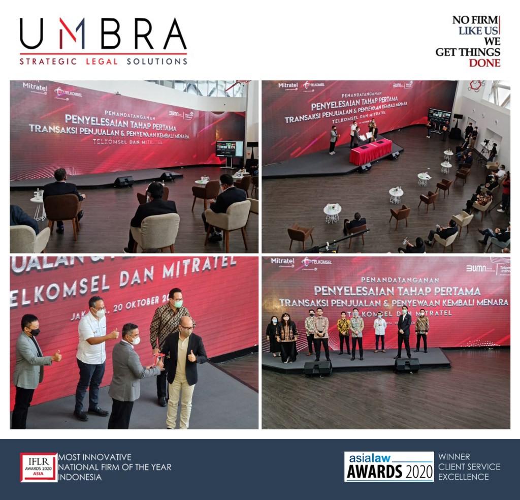 Supporting Mitratel’s journey of becoming the leading and largest tower company in Indonesia and South East Asia has been a real pleasure for us. Led by our Managing Partner, Pramudya A. Oktavinanda, and associate Andika Setia Budi, in the last 2 years only, UMBRA has participated in multiple assets and shares deals for Mitratel involving more than 10,000 telco towers with a total deal value of more than IDR15 trillion, each always in such a tight deadline and with complex closing procedures to ensure that thousands of those towers can be transferred swiftly at the same time.