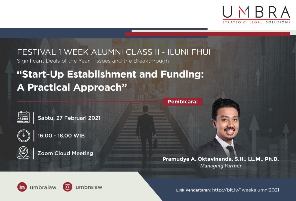 UMBRA’s Managing Partner Pramudya A. Oktavinanda will be speaking this coming Saturday at the ILUNI FHUI’s Alumni Class Festival where various law firms will discuss some of their recent major deals and the lessons learned from those deals.