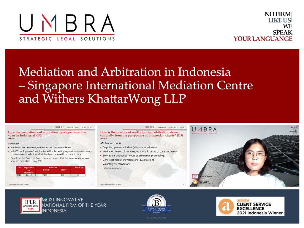 We are honored that our Senior Partner, Melati Siregar, was invited to speak in an international webinar held by Withers KhattarWong LLP, titled “Mediation and Arbitration in the ASEAN region”.