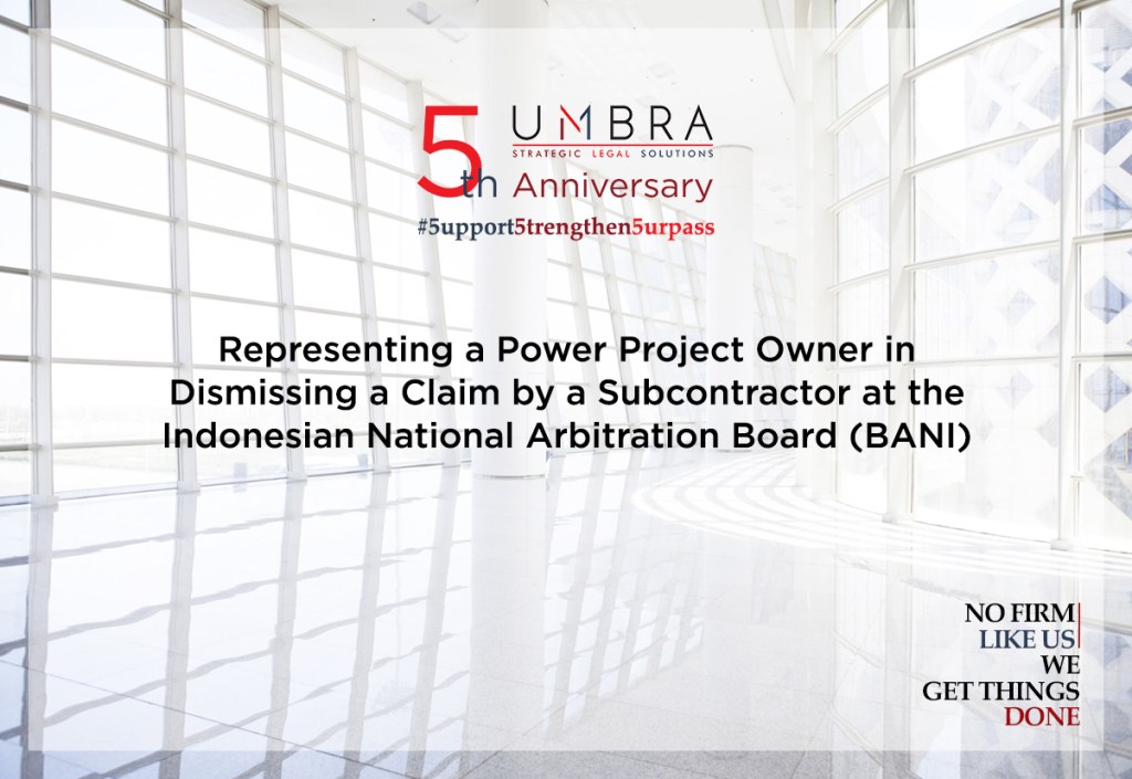 We are delighted to announce the recent success of our Litigation & Alternative Dispute Resolution team in representing a power project owner in dismissing a claim by a subcontractor at the Indonesian National Arbitration Board (BANI), ensuring that the project owner is not in default under its project financing documents worth billions of dollars.