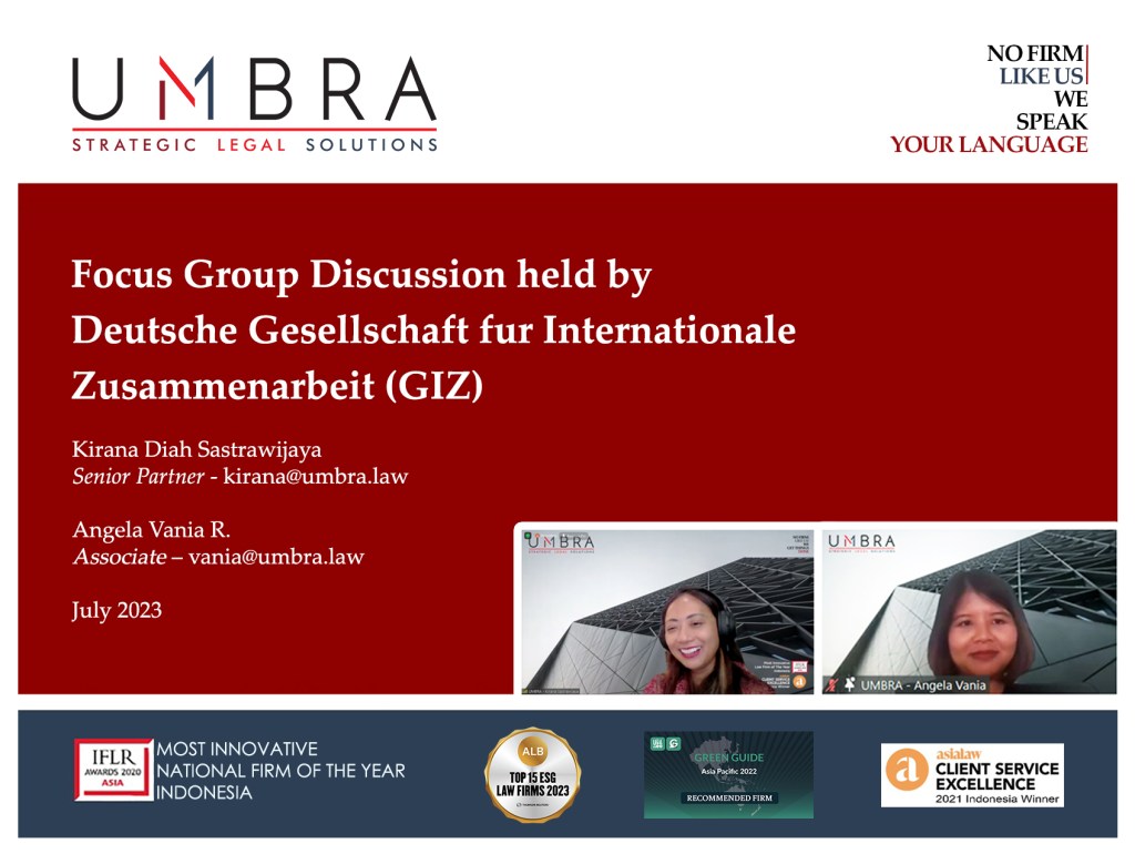 We are delighted to have our Head of Power and Infrastructure Senior Partner, Kirana Sastrawijaya, and Associate Angela Vania Rustandi to share their legal insights on the recently enacted Government Regulation No. 33 of 2023 on Energy Conservation in a sharing session organized by Deutsche Gesellschaft fur Internationale Zusammenarbeit (GIZ) on July 28th, last week.