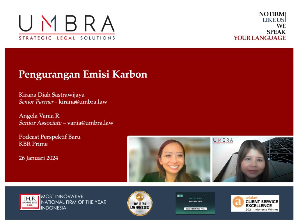 In an engaging round of carbon-sharing discussion, our Senior Partner leading the Projects and Infrastructure Practice Group Kirana D. Sastrawijaya and our Senior Associate Angela Vania Rustandi were invited, on behalf of the Association of Carbon Emission Experts Indonesia (ACEXI), by the Perspektif Baru Radio to shed light on the national efforts to curtail carbon emission.