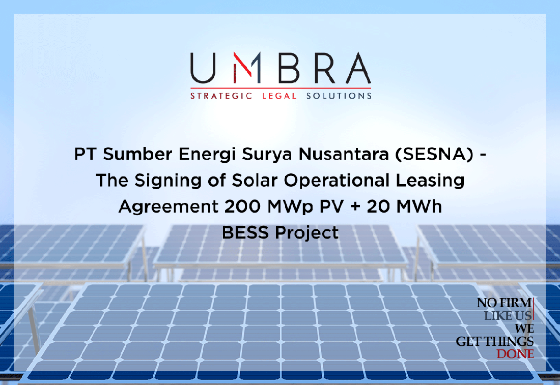 PT Sumber Energi Surya Nusantara (SESNA) – The Signing of Solar Operational Leasing Agreement 200 MWp PV + 20 MWh BESS Project