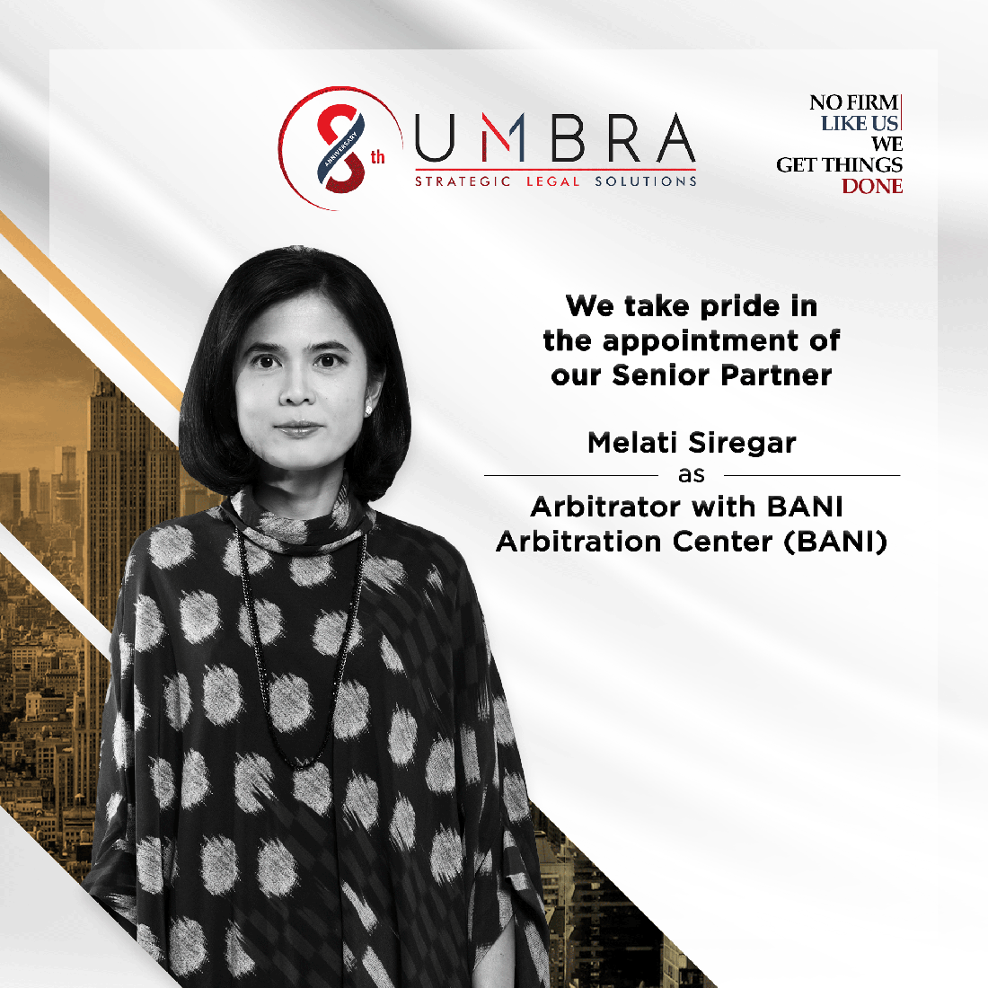 [vc_row row_type="row" use_row_as_full_screen_section="no" type="full_width" text_align="left" background_animation="none" css_animation=""][vc_column width="5/6"][vc_column_text css=""]We are pleased to announce that our Senior Partner and Head of Dispute Resolution Focus Group, Melati Siregar, has been formally registered as an arbitrator with BANI, Indonesia’s leading institution for commercial dispute resolution outside the court. This...